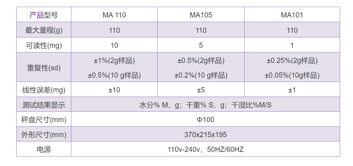 重復(fù)性(sd):±1%(2g樣品);±0.5%(10 g樣品)